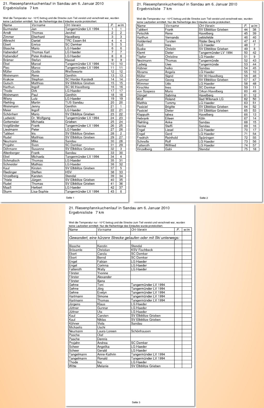 Seit 2018 erfolgt die Bereitstellung der Anmeldung, der Teilnehmer- und Er - gebnislisten und des Urkundendrucks im Auftrag des Tanger-Timeservice über die Firma race result AG aus Pfinztal. Bitte nicht vergessen, dass aufgrund der Coronamaßnahmen in den Jahren 2021 und 2022 keine Läufe stattfinden konnten.