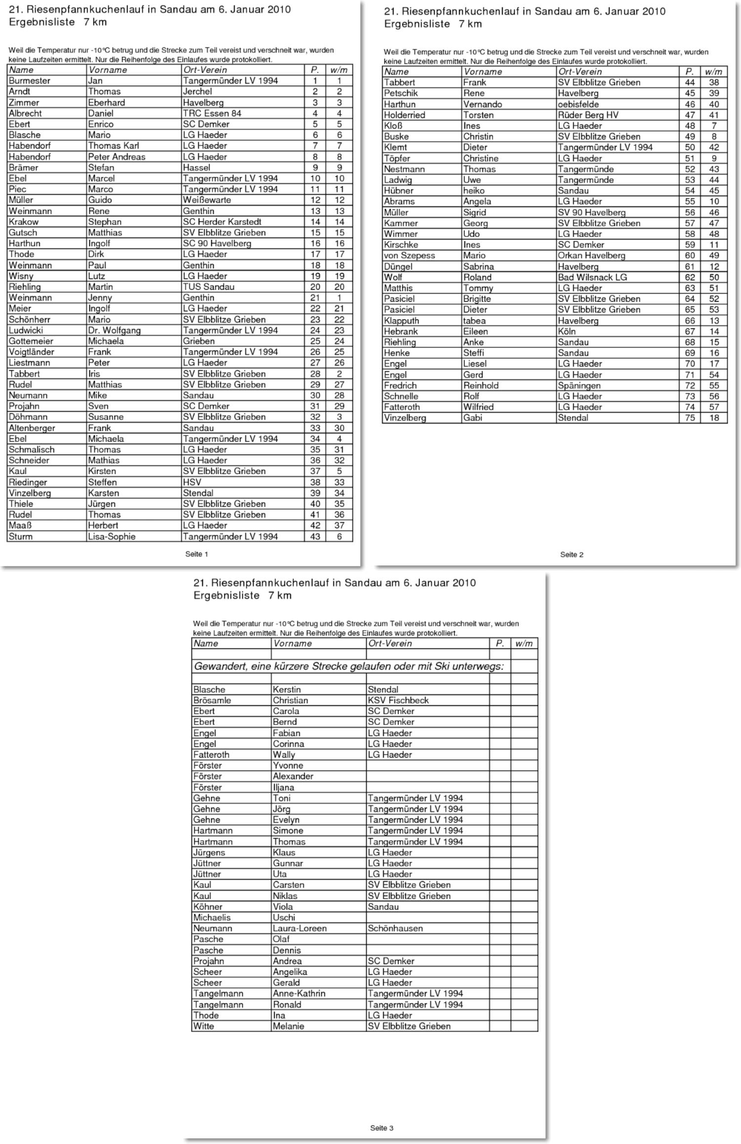 21. Riesenpfannkuchenlauf, 6. Januar 2010 - 7 km